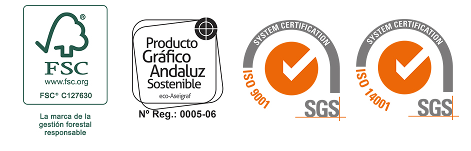 En Gráficas La Paz contamos con el sello de calidad medioambiental ISO 14001 y la certificación de la Cadena de Custodia de Productos Forestales (FSC), que garantiza que nuestra materia prima proviene de bosques certificados y sostenibles.